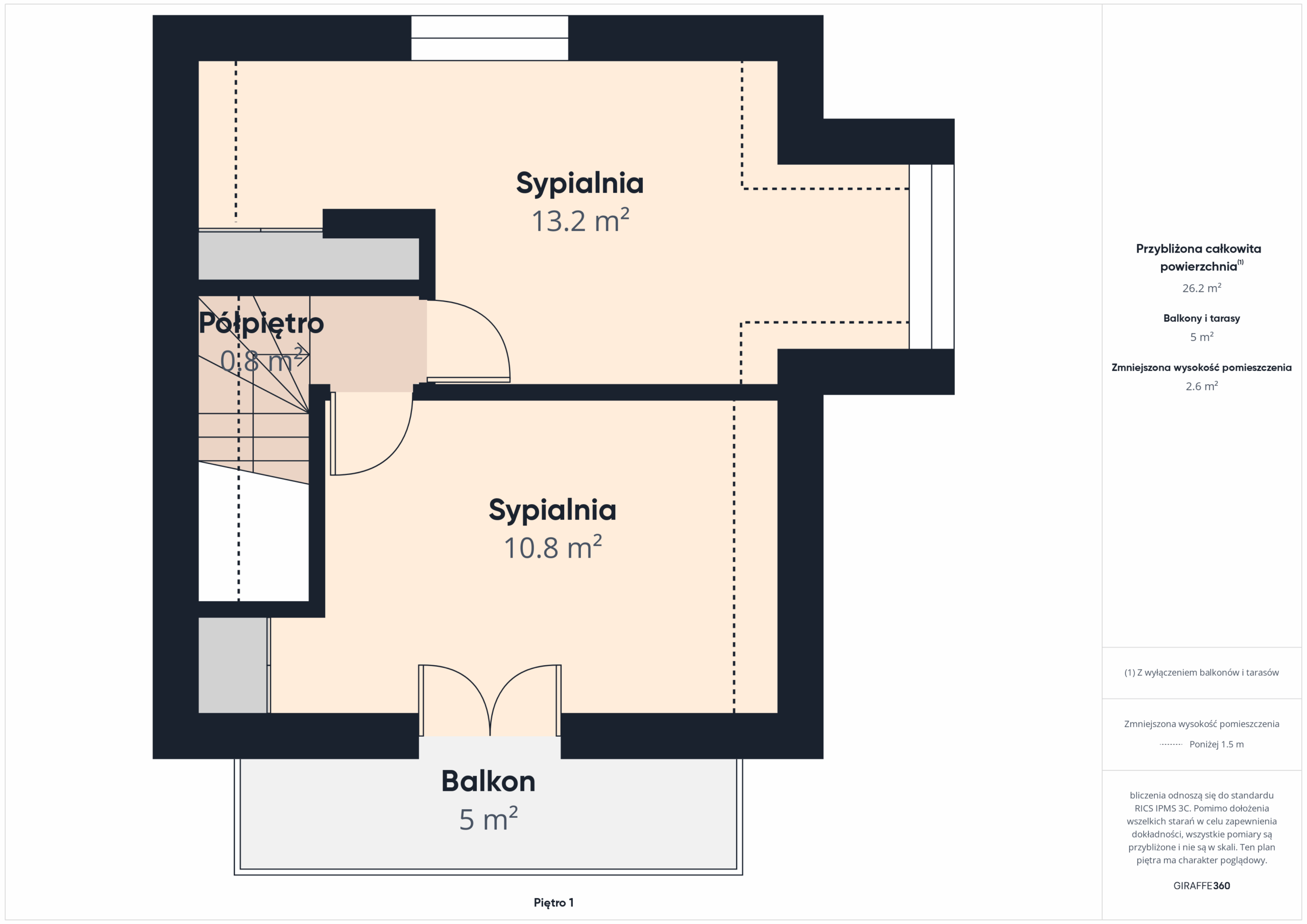 • 2 sypialnie, w tym jedna z balkonem 5 m² i widokiem w stronę Gorców,
