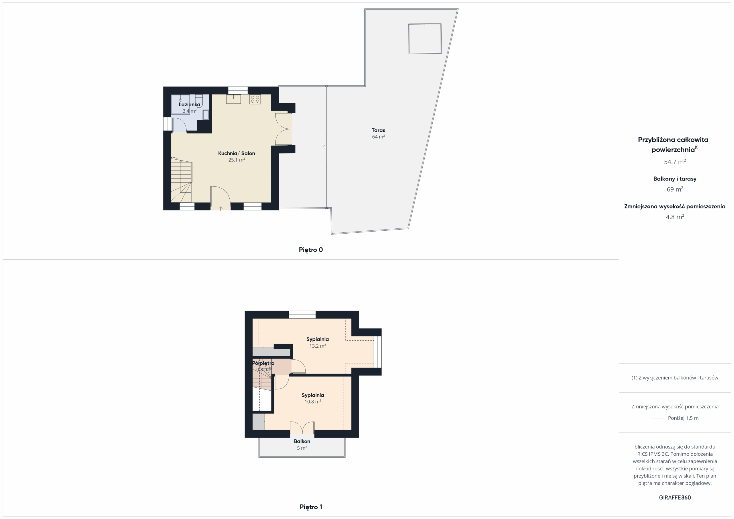 • powierzchnia całkowita: 55 m² (ok. 50 m² powierzchni użytkowej),