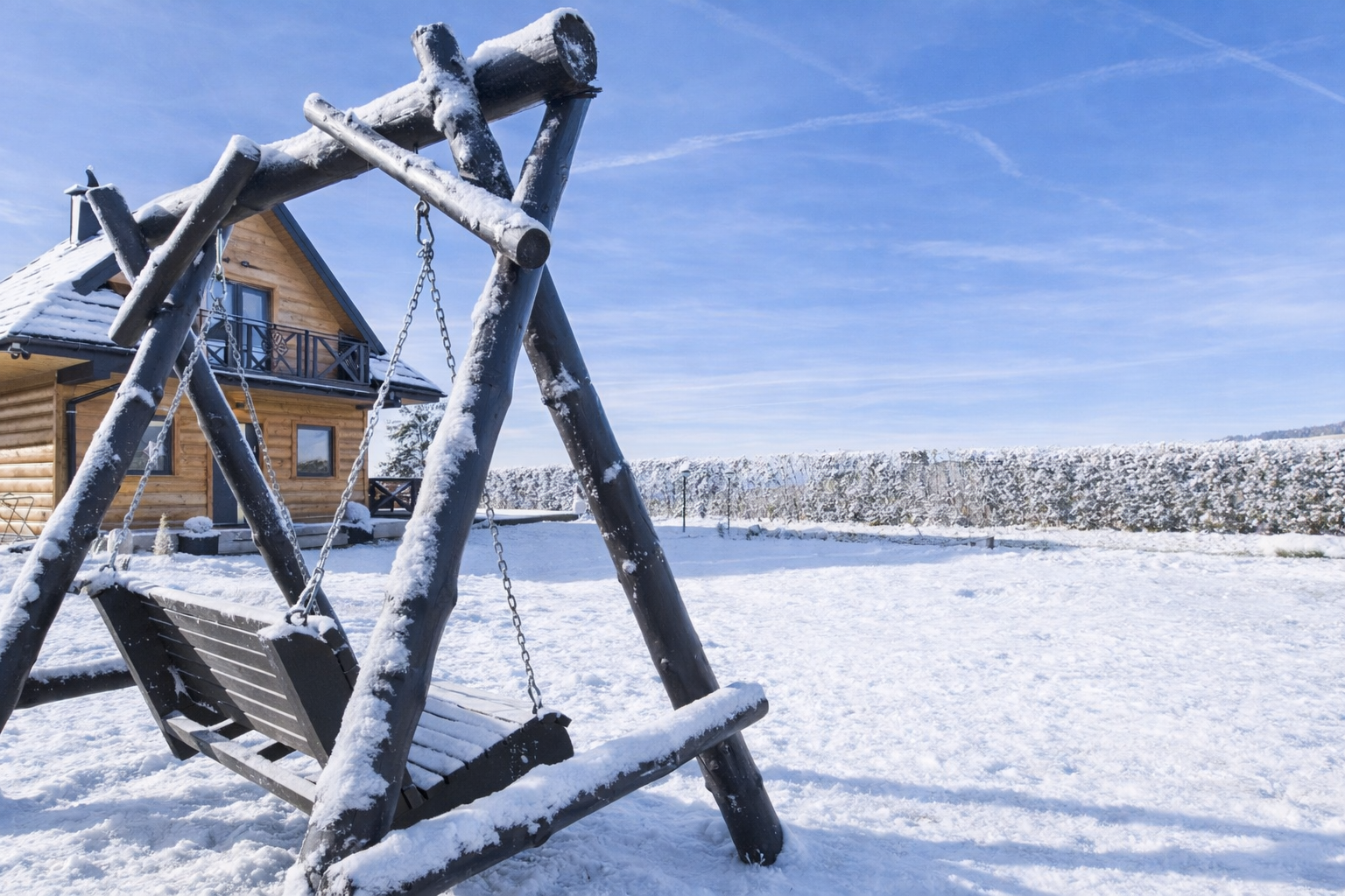 Działka nie jest ogrodzona, natomiast została obsadzona naturalnym żywopłotem, który zapewnia prywatność i bardzo dobrze wpisuje się w górski krajobraz.